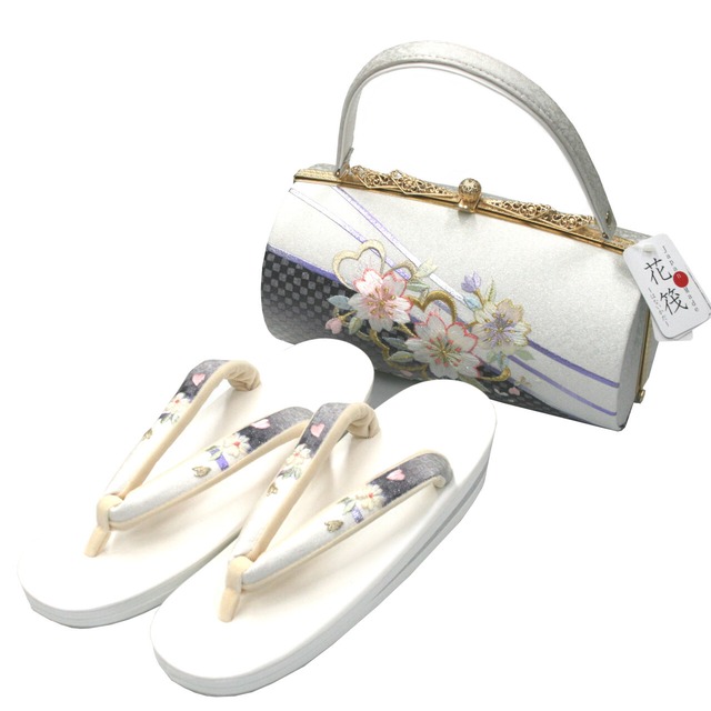 草履バッグセット 刺繍 帯地 正絹 白 黒 銀 草履 バッグ 振袖 卒業袴 訪問着 成人式 卒業式 日本製 フリーサイズ