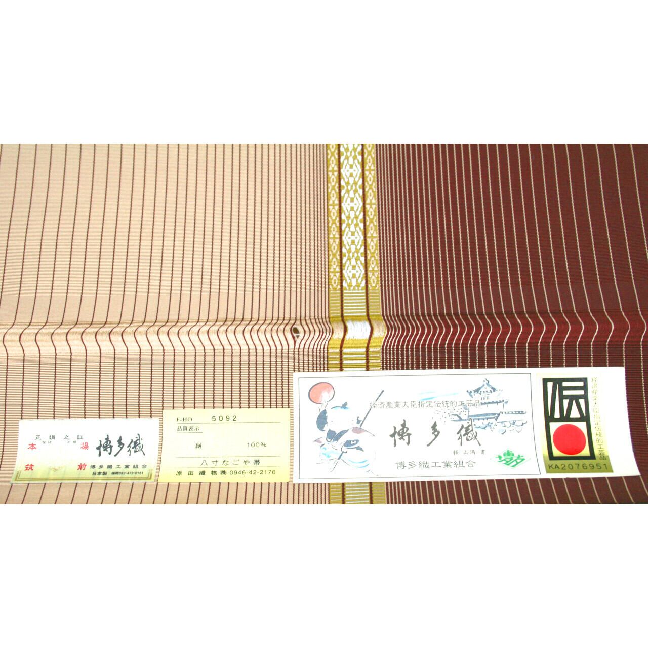 博多織の張りと締めたら緩まない伝統的な技術で織られた、最高品質『金証紙』の博多織八寸なごや帯です。