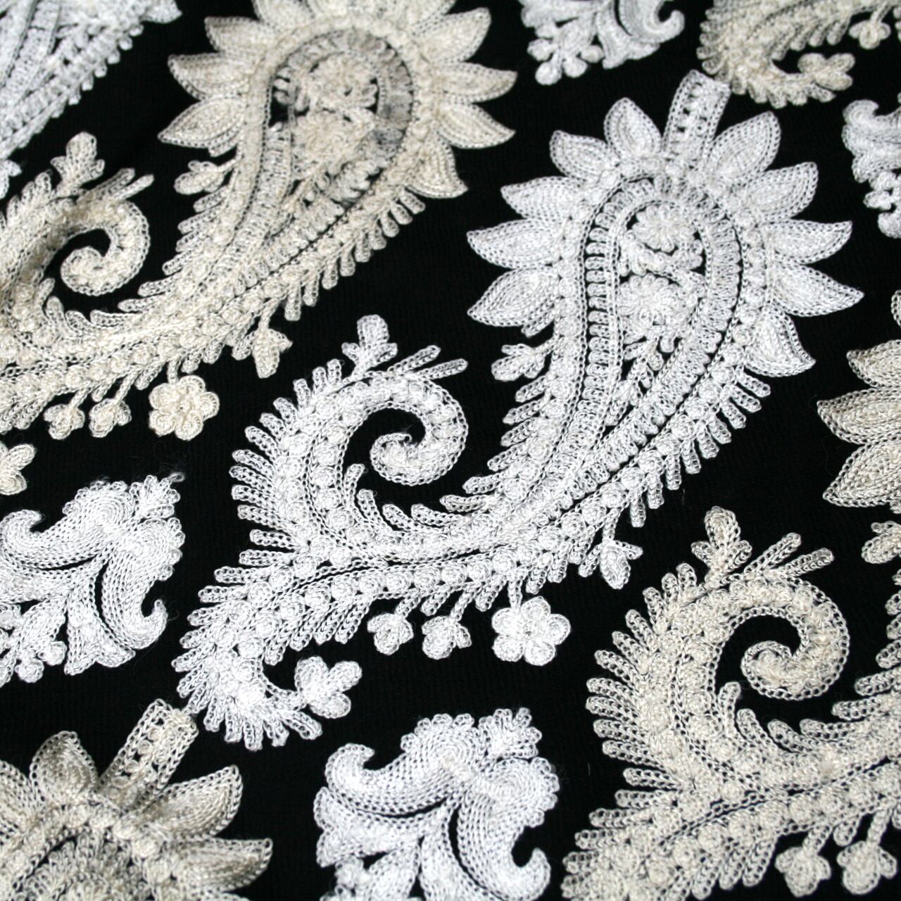 インド・カシミール地方に伝わる伝統的なカシミール手刺繍のウール100%のショールです。