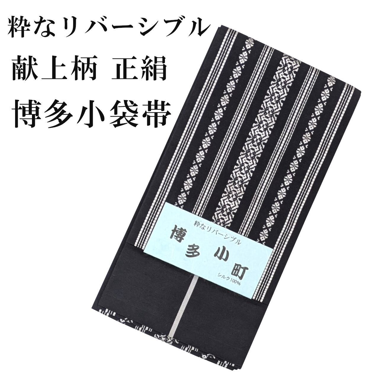 本場筑前博多織 小袋帯 リバーシブル 黒