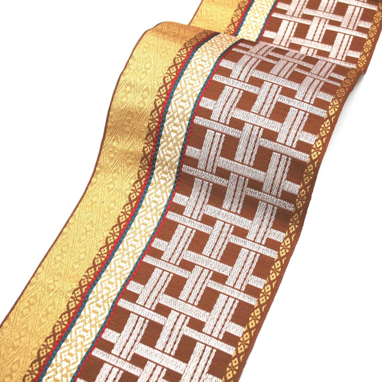 博多織の張りと締めたら緩まない伝統的な技術で織られた博多織小袋帯です。