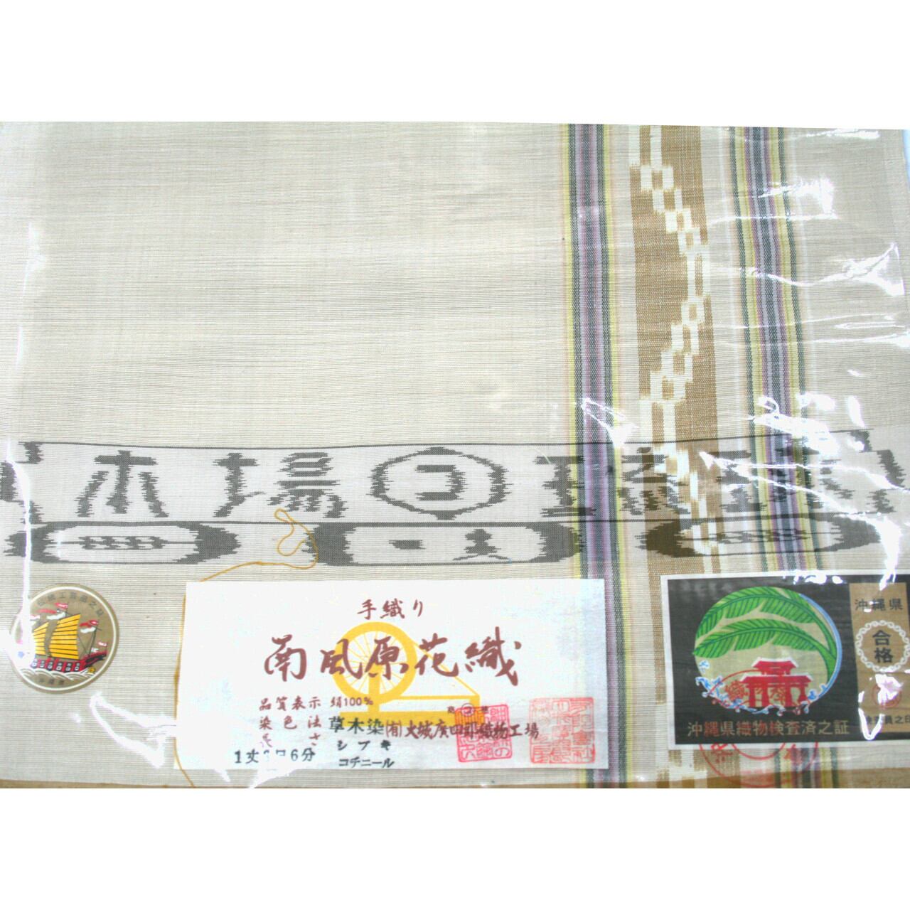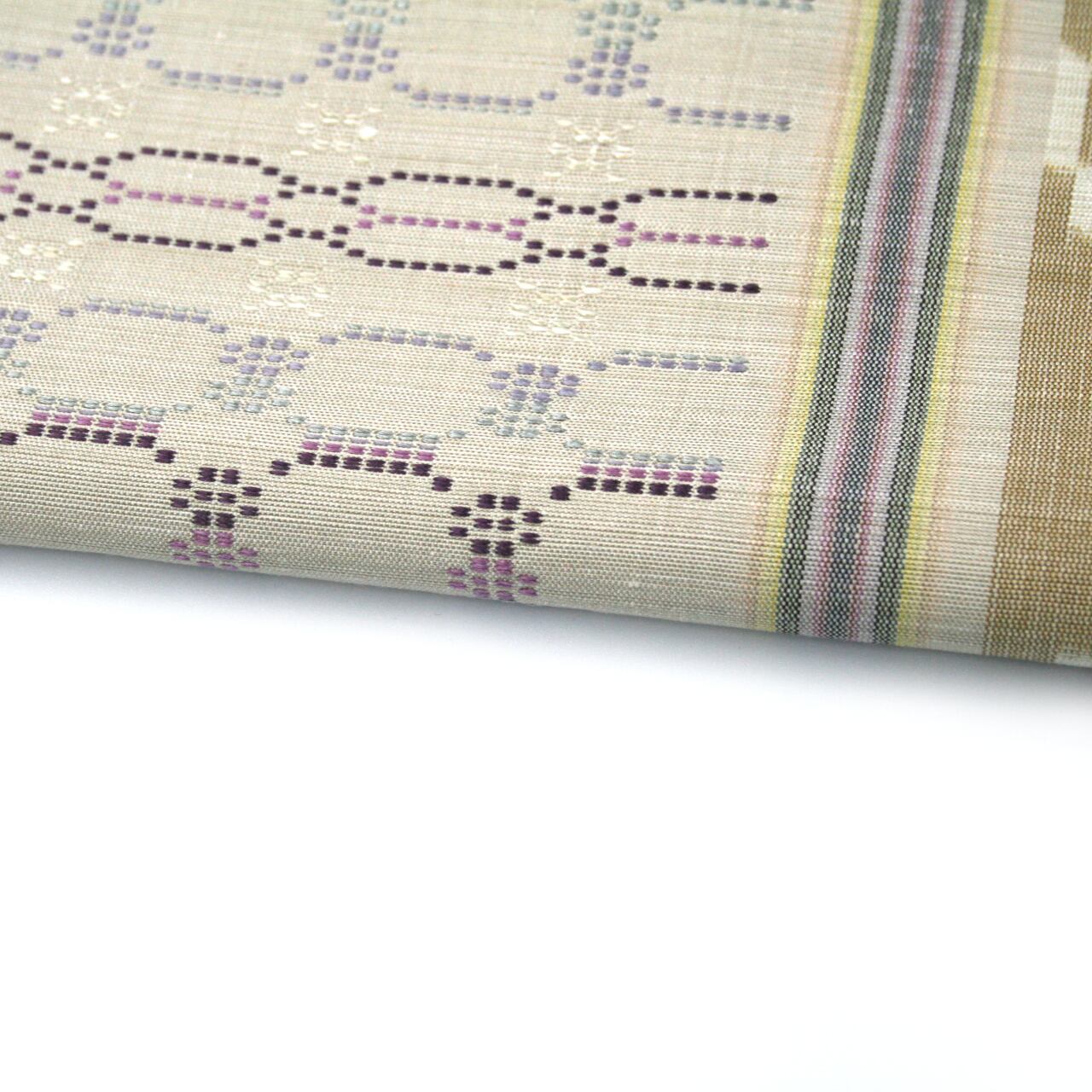 本場琉球 南風原花織 手織 未仕立て品 名古屋帯 九寸 お太鼓柄 草木染 正絹 花織 なごや帯 伝統工芸品 03