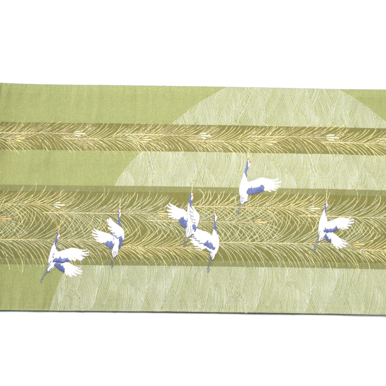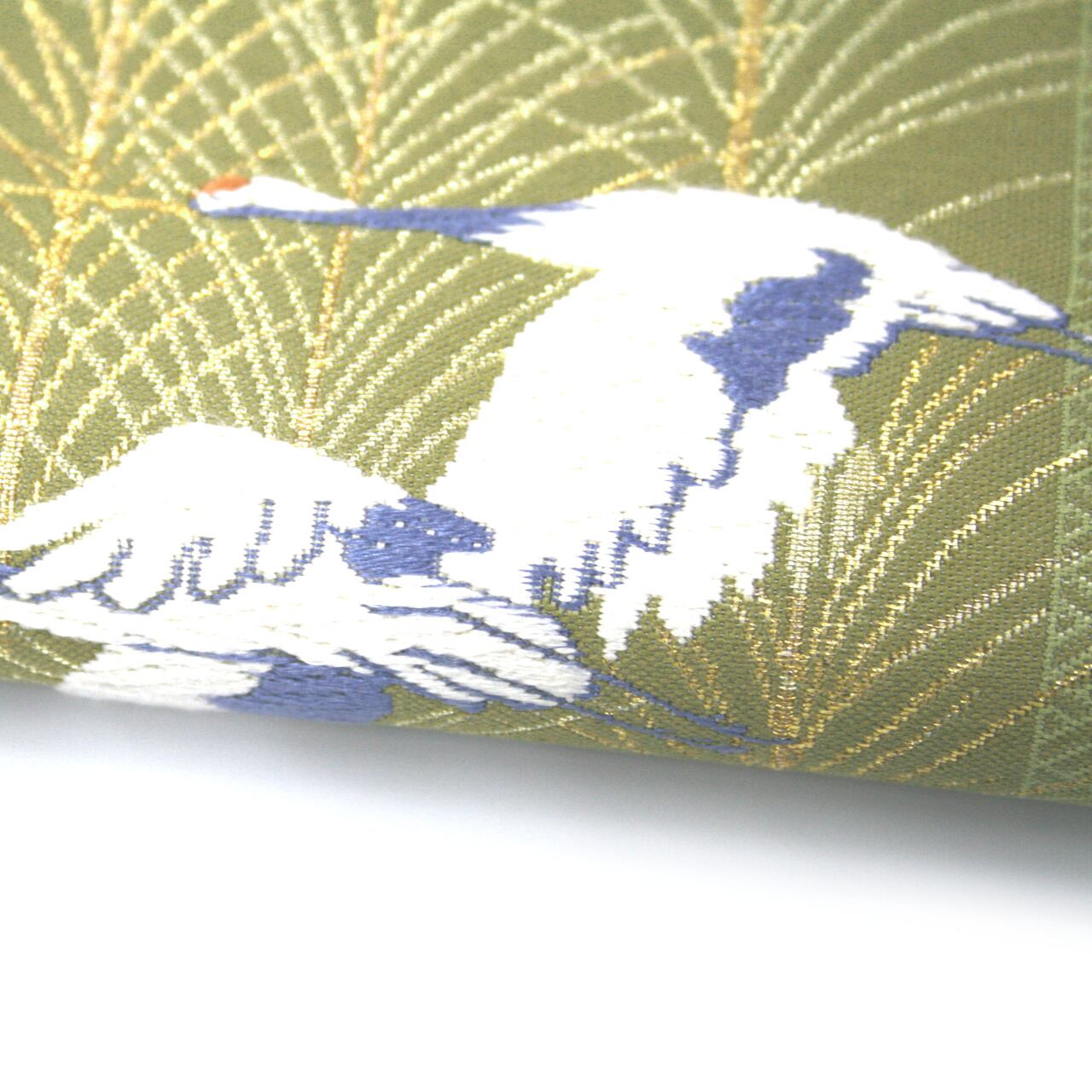 お仕立付き 京洛苑謹製 紹紦織 刺繍 鶴柄 西陣織 袋帯 彩麗 日本製