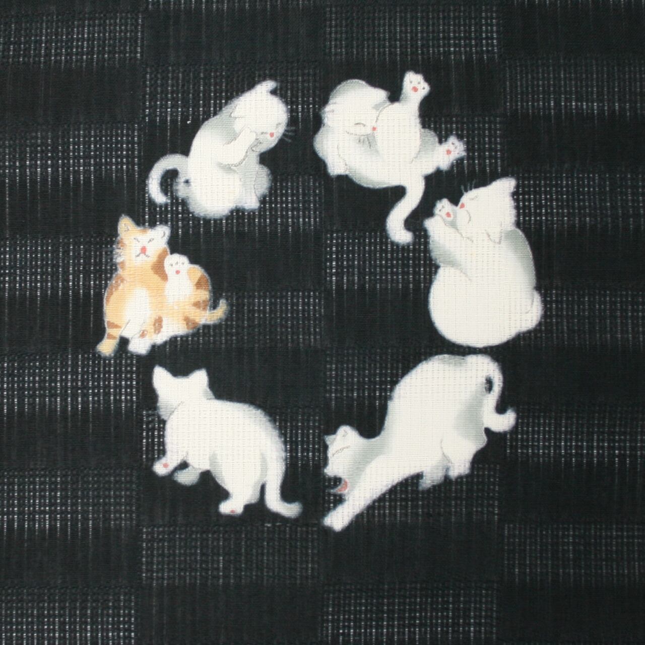 お仕立て付き 本麻 名古屋帯 ねこ柄 小千谷織物 染帯 お太鼓柄 夏物 反物 未仕立て品