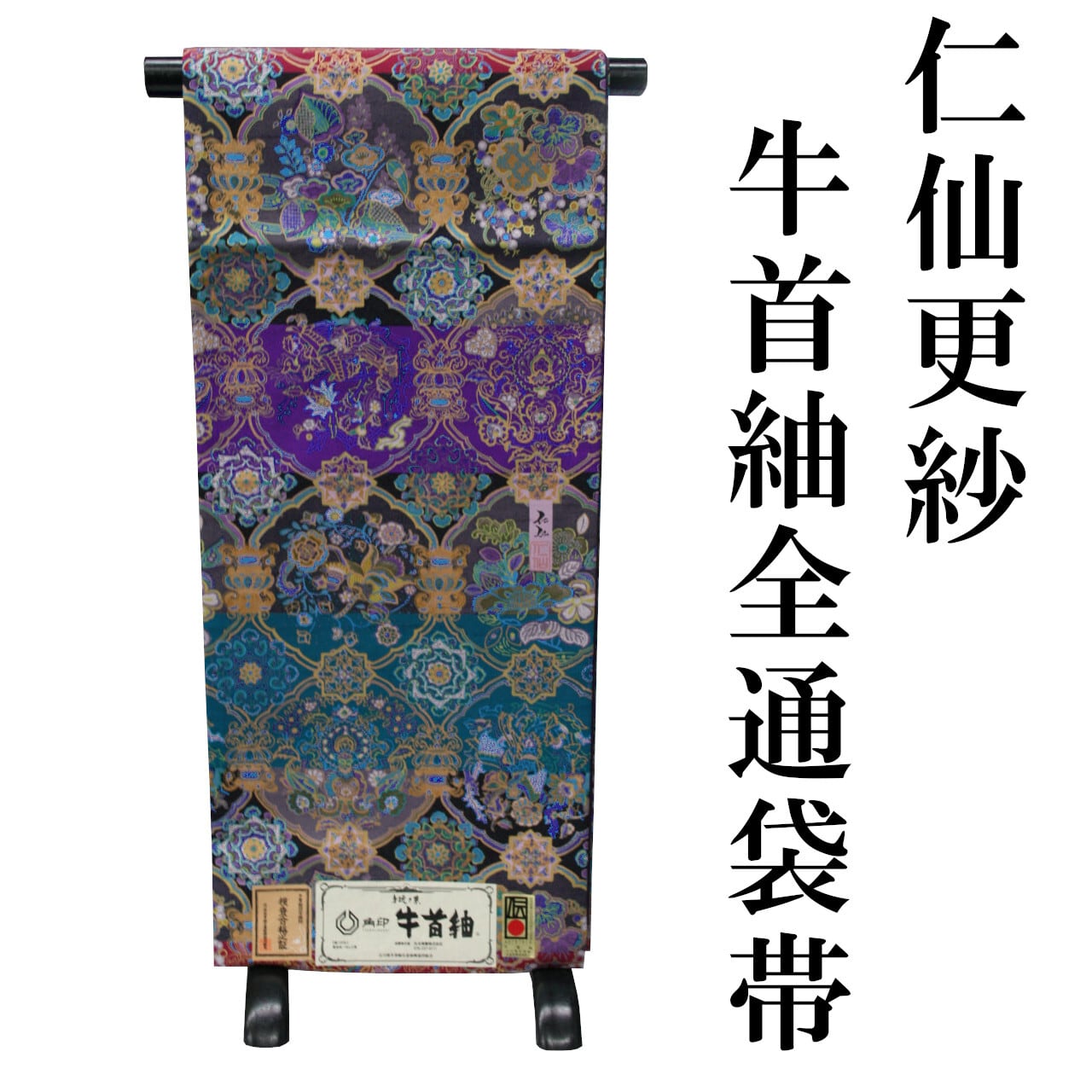 仁仙 牛首紬 仁仙更紗 全通 袋帯 染帯